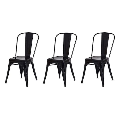 Kit 3 Cadeiras Tolix Iron Design Preta Aço Industrial Sala Cozinha Jantar Bar