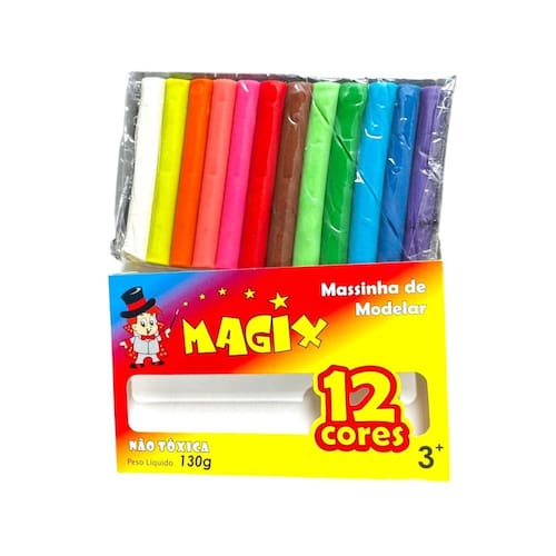 Design Atraente e Diversão na Palma das Mãos Com 12 cores vibrantes, cada caixa de 130g oferece infinitas possibilidades para que as crianças criem do jeito que imaginarem. De projetos escolares a artesanato, a Massinha Magix é a escolha perfeita para despertar o artista interior