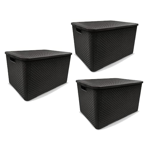 Kit 3 Caixas Organizadoras Rattan PRETA 40 Litros Arqplast Kit 3 Caixas Organizadoras Rattan PRETA 40 Litros Arqplast Caixa organizadora em plástico com tampa, que facilita a organização De guarda roupas e armários, por ser uma peça charmosa expor em Ambientes abertos dá um toque especial a decoração. Combina com vários ambientes, como cozinha, sala, banheiro e quarto. Material - Polipropileno DescriçãoDimensões:480 X 340 X 890mm (Corpo) 505 X 370 X 165mm (Tampa) (comprimento x largura x altura) medida do produtoDimensões: 485 X 345 X 290mm (comprimento x largura x altura)