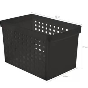 Garantia: 90 dias / Peso total: 1,740kg / Cor predominante: preto / Ref: 7798139144773; Dimensões internas de cada caixa: 26cm (C) x 38,5cm (L) x 24,5cm (A); Dimensões de cada caixa: 42cm (C) x 27cm (L) x 27cm (A); Capacidade de cada caixa: 27,9 litros; Material: polipropileno; Conteúdo: 3 caixas para arquivos com etiquetas organizadoras; Cuidados: não utilizar materiais químicos ou abrasivos na limpeza do produto; Obs.: as pastas para arquivos não acompanham o produto, imagens ilustrativas.