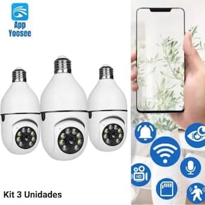 Kit 3 câmeras segurança prova d'água infravermelho lâmpada sem fio wifi - yoosee camera lâmpada wifi ip segurança panoramica giratoria