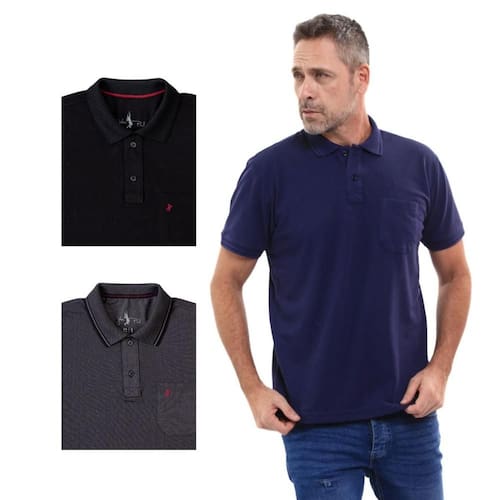 Kit 3 Camisa Polo Masculina Pique Premium com Bolso Casual - Transparente - G