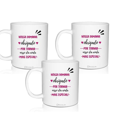 Kit 3 Canecas Brancas Personalizadas Agradecimento Daminha As Canecas Convite são uma forma linda e deliciosa de convidar ou agradecer os pequenos por participarem de uma data tão única Com capacidade de 300 ml, você tem a opção de encher as canecas com todo tipo de doce e assim encantar as futuras Daminhas. O sim delas será GARANTIDO Conteúdo: 3 Canecas Convite Branca Personalizado Daminha Capacidade: 300 ml Cor: Branco Material: Policarbonato Quantidade: 3 Peças Ean: 7897581923889