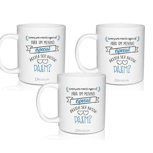 Kit 3 Canecas Convite Personalizadas Pajem Convite Especial As Canecas Convite são uma forma linda e deliciosa de convidar ou agradecer os pequenos por participarem de uma data tão única. Com capacidade de 300 ml, você tem a opção de encher as canecas com todo tipo de doce e assim encantar os futuros Pajens. O sim deles será GARANTIDO 3 Canecas Convite Branca Personalizado Pajem Capacidade: 300 ml Cor: Branco Material: Policarbonato Quantidade: 3 Peças