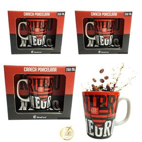 Kit 3 unidades caneca porcelana premium 260ml café flamengo oficial com selo licenciado
