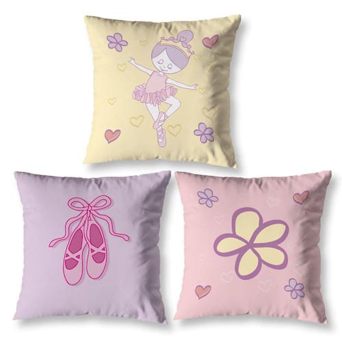 Kit 3 Capas De Almofada Infantil 40Cm X 40Cm Zíper Bailarina