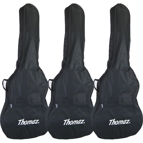 A capa para violão Thomaz foi cuidadosamente projetada para transportar e proteger seu violão, oferecendo o ajuste perfeito para instrumentos de 39”. Equipada com alça lateral e traseira, proporciona praticidade no transporte, além de um bolso frontal com zíper para armazenamento adicional. Ideal para músicos que valorizam tanto a segurança quanto a conveniência ao transportar seu instrumento.Especificações - Marca: Thomaz- Tamanho: 39”- Cor: Preta- Fechamento: Zíper- Medidas Aprox.: 13 x 42 x 100 cmConteúdo da Embalagem- 3 Capas para Violão Preta Thomaz*imagens meramente ilustrativas
