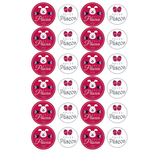 Kit 3 Cartelas de Adesivos Feliz Páscoa Rosa e Branco 72 Uni