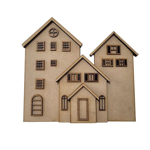 KIT com 3 Casinhas em mdf 6mm com aberturas em aplique para contrução de condomínio