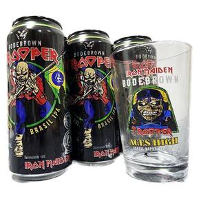 Kit 3 Cervejas Trooper Iron Maiden Ipa 473ml + Copo 350ml Desenvolvida pelo vocalista da banda Iron Maiden juntamente com a cervejaria Bodebrown. Inspirada em uma canção, a Trooper foi eleita a melhor cerveja em 2023 pelo seu suave sabor de cacau, chocolate branco e manga.