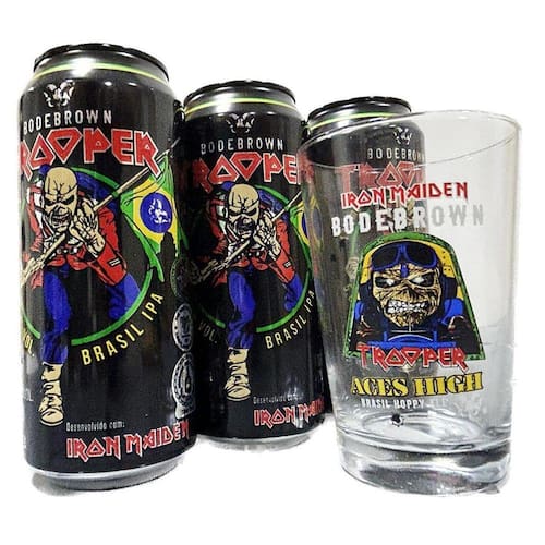 - Cerveja Ipa 473ml + Copo Aces High Caldereta 350ml - Teor alcoólico 5% - Cor Ouro Marca: Trooper Iron Maiden Bodebrown Ean: 7793239330163