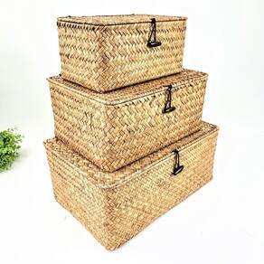 Confeccionadas em fibra natural trançada, estas caixas trazem a beleza orgânica e a textura acolhedora que complementam diversos estilos de decoração, do boho ao minimalista. O kit é composto por três tamanhos: a caixa p, com aproximadamente 11,5 cm de altura, 24 cm de largura e 14 cm de profundidade, pesando 210g; a caixa m, com cerca de 13,5 cm de altura, 29,5 cm de largura e 21 cm de profundidade, pesando 360g; e a caixa g, medindo aproximadamente 15 cm de altura, 36,5 cm de largura e 23,5 cm de profundidade, com 430g. Juntas, elas oferecem um espaço prático pra guardar uma variedade de objetos, desde acessórios e produtos de higiene a livros e correspondências, mantendo tudo arrumado e acessível. A diferença de tamanhos permite encaixá-las em diferentes espaços ou utilizá-las em conjunto para uma composição organizada e visualmente agradável.