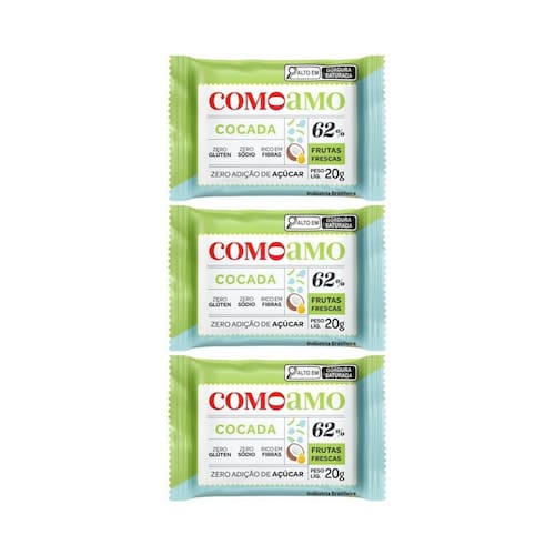 Kit 3 Cocada Zero 20g - ComoAmo - Grupo Rocha Saúde Sabor tradicional de cocada com zero adição de açúcar, perfeita para um lanche prático e indulgente A Cocada Zero 20g - ComoAmo traz o sabor autêntico do coco em uma versão moderna, sem adição de açúcar. Com textura macia, doçura equilibrada e ingredientes cuidadosamente selecionados, ela é ideal para quem busca praticidade sem abrir mão do sabor tradicional. Perfeita para consumir entre refeições, levar na bolsa ou ter sempre à mão no dia a dia. Uma opção leve, saborosa e que resgata a memória afetiva com mais equilíbrio. Diferenciais do Produto Sabor clássico de cocada Zero adição de açúcar Textura macia e agradável Embalagem prática de 20g Sem glúten e sem lactose Sugestões de Consumo Lanche rápido entre as refeições Para acompanhar cafés ou bebidas vegetais Como sobremesa prática no dia a dia Ideal para levar na bolsa, lancheira ou mochila Destaques do Produto Sabor marcante de coco natural Doce na medida certa sem açúcar adicionado Textura cremosa e consistente Pronto para consumo imediato Informações do Produto Produto: Cocada Zero Marca: ComoAmo Peso: 20g Não contém: Glúten e lactose Marca: Não Informado