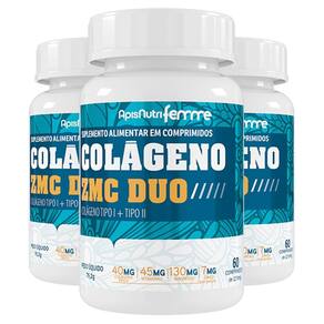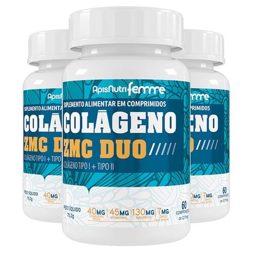 Colágeno zmc duo apisnutri 60 comprimidos Conservação e advertências: Manter a embalagem bem fechada e em local seco e fresco. Não expor a luz solar. Após aberto consumir em até 90 dias. Não exceder a recomendação diária de consumo indicada na embalagem. Mantenha fora do alcance de crianças. Ingredientes: Colágeno hidrolisado, acerola em pó, bisglicinato de magnésio, colágeno tipo ii, bisglicinato de zinco. Antiaglutinante: estearato de magnésio. Agente de massa: talco usp, celulose e sílica. Pode conter traços de glúten. Sugestão de uso: Ingerir 2 cápsulas 2 vezes ao dia. Recomendação de uso: 19 dezenove anos ou acima. Isento de registro no m.S. Conforme rdc 240/2018. Marca: Não Informado