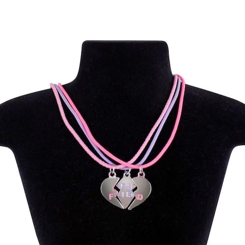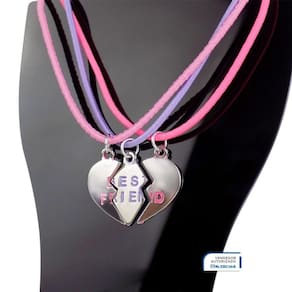 Kit 3 Colares Best Friend + Pingente Coração Meninas Rosa Triplo Presente Qualidade Premium Moda Kit 3 Colares Amizade Best Friends - Fortaleça seus laços de amizade! Celebre a amizade com o incrível Kit 3 Colares Amizade Best Friends! Este conjunto especial é perfeito para fortalecer os laços de cumplicidade entre melhores amigas. Com um design delicado e atemporal, estes colares são ideais para uso diário, adicionando estilo e significado ao visual de cada amiga. E o melhor de tudo é que cada uma poderá usar um dos três colares, simbolizando a força dos laços entre melhores amigas.