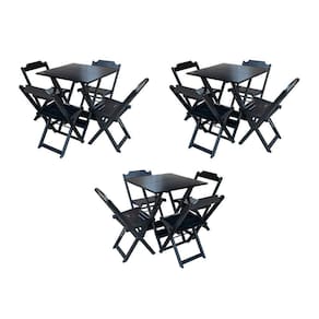 Kit 3 Conjuntos De Mesa Dobravel Com 4 Cadeiras De Madeira 70x70 Para Restaurante E Bar - Preto