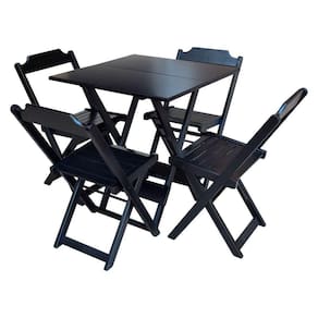 Kit 3 Conjuntos De Mesa Dobravel Com 4 Cadeiras De Madeira 70X70 Para Restaurante E Bar - Preto