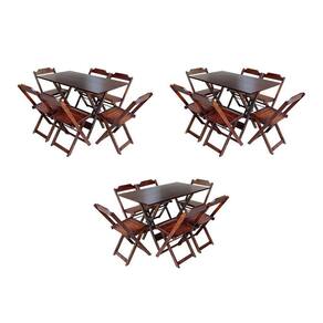 Kit 3 Conjuntos De Mesa Dobravel Com 6 Cadeiras De Madeira 120X70 Para Restaurante E Bar - Imbuia - Marrom