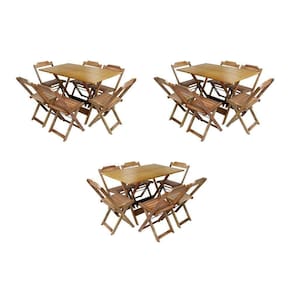Kit 3 Conjuntos De Mesa Dobravel Com 6 Cadeiras De Madeira 120x70 Para Restaurante E Bar - Mel