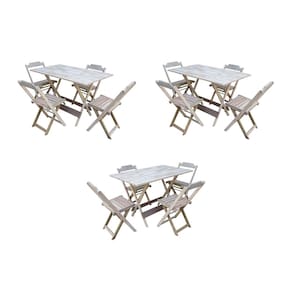 Kit 3 Conjuntos de Mesas Dobraveis em Madeira Padrão 120x70 com 4 Cadeiras - sem Pintura - Marrom