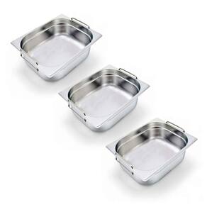 Kit 3 Cubas Gastronômica Inox GN 1/2 150mm com Alça Prateada