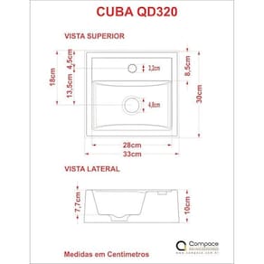 A Cuba Q32 tem seu design quadrado, especial para pequenos espaços e um excelente escoamento de água. Fabricada em mármore sintético com acabamento em gel coat, material bem semelhante a louça, muito resistente e mais econômico. Altura do Conjunto: 10 cm Ambiente: null Ambiente Principal: Banheiro Cor: Branco Informação Complementar: 3x Cuba para Banheiro Q32W Branco Largura: 30 cm Altura: 10 cm Peso: 3,75 kg