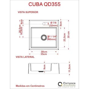 Largura do Conjunto: 35 cm Marca: Compace Material Principal: Mármore Sintético
