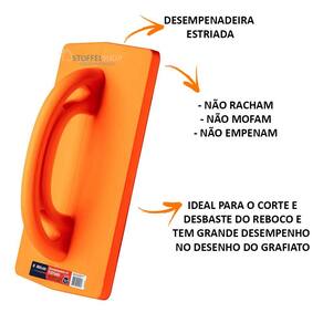 DESEMPENADEIRA POLIURETANO ESTRIADA 30X18CM 3 UNIDADESREF: AT161/1MARCA: ATLAS-DESCRIÇÃO DO PRODUTO:-Desempenadeira de Poliuretano, na cor laranja, com base estriada 300mmX180mm.-Produzida em poliuretano, é uma ferramenta de alta tecnologia que apresenta desempenho e vida útil superior aos modelos de madeira, PS ou plástico reforçado com fibra de vidro.-As desempenadeiras de PU da Atlas são termo fixas e não empenam, não mofam e não racham.-São surpreendentemente leves e produzidas em monobloco, o que evita que o cabo se desprenda da base.-INDICAÇÃO DE USO:-Ideal para o corte e desbaste do reboco e tem grande desempenho no desenho do grafiato.-Indicada para a uso em argamassas em geral.-DIMENSÕES:-Comprimento: 30cm-Largura: 18cm-Altura: 8,5cm-Vantagens em comprar conosco:- Temos todos os produtos em estoque a pronta entrega.- Enviamos em até 24 horas todos os pedidos confirmados.- Compra 100% segura.- Emitimos nota fiscal.- Produtos com qualidade superior.ATENÇÃO:Dúvidas pergunte a vontade que estamos sempre a sua disposição.-