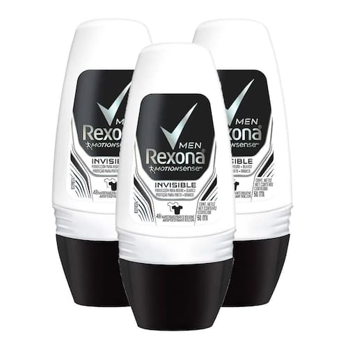 DESODORANTE ANTITRANSPIRANTE REXONA MEN INVISIBLE ROLL-ON Ninguém gosta de se sentir desconfortável durante o dia por causa do suor, muito menos de ter sua roupas com manchas de desodorante sejam elas brancas ou amarelas. Por isso, Rexona desenvolveu Rexona Invisible o antitranspirante que além de te proteger por 48horas, protege suas roupas contra as manchas. Rexona Invisible contém a inovadora tecnologia MotionSense™. Suas exclusivas microcápsulas são quebradas pelo atrito dos movimentos, liberando proteção extra ao logo do dia. Nada é melhor contra manchas e transpiração. Nada é melhor contra manchas e transpiração. Não contém álcool etílico. 48 horas de proteção contra o odor e a transpiração. Testado dermatologicamente. Disponível também nas versões Aerosol 150ml.