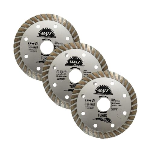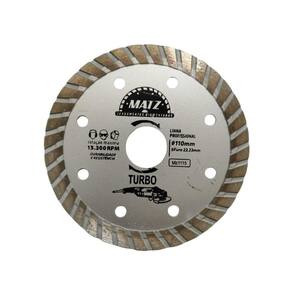 Informações técnicas: Perfil do corte: Turbo Diamantado Tipo de corte: A seco e refrigerado Dimensões: - Diâmetro externo: 110mm 4.3/8'' - Diâmetro do furo: 22,23mm 7/8'' - Acompanha anel de redução para 20mm - Perfil de corte: 10mm - Espessura: 2mm Rotação máxima por minuto RPM : 13.330 - 80m/s Para corte de: Mármores, paredes, ardósia, revestimentos, telhas e pisos Proporciona qualidade e produtividade na operação Produto de altíssima qualidade com alta performance