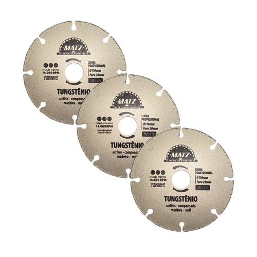 Kit 3 Disco Segmentado Tungstênio Para Madeira 110X20Mm Matz