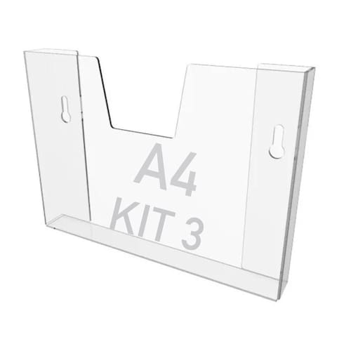 Kit com 3 porta folhas display parede A4 horizontal/deitado é um item projetado para a exposição de diversos tipos de documentos, avisos, materiais impressos, prontuários, entre outros.
