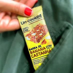 1 unidade: Barra de Banana com Castanhas Sem Glúten Vegano Uncooked 30g