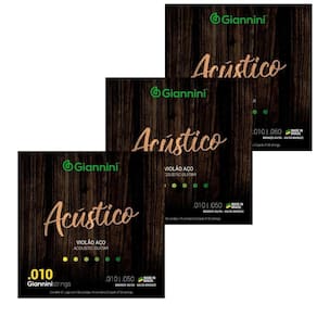 KIT 3 ENCORDOAMENTO VIOLÃO AÇO GIANNINI GESWAM ACÚSTICO 010