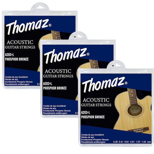 - 03 Jogos de Encordoamento Violão Aço 012 Phosphor Bronze 203L Thomaz