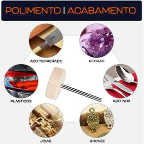 - Marca: Dremax - Jogo exclusivo com 3 escovas de feltro - Indicado para polimentos - Diâmetro da escova: 25mm - Haste: 3mm - Uso em micro retíficas de qualquer marca com pinça de 3mm - Para polir metais e plásticos em superfícies planas ou orifícios - Indicada para polimento de metais ferrosos ou não ferrosos, aço, aço inoxidável, alumínio, bronze, cobre, latão e plástico em geral - Garantia: 90 dias contra defeitos de fabricação