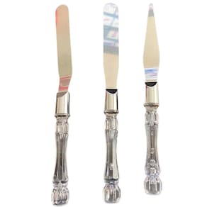 Feitas em Aço Inox com cabo em plástico, são ideais para confeitar bolos além de facilitar muito o alisamento de coberturas, chantilly, ganache e também serve para espalhar recheios