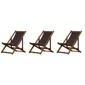 Kit 3 Espreguiçadeira Preguiçosa Dobrável Mel Sb-marrom 3 ESPREGUIÇADEIRAS EM MADEIRA ENVERNIZADA MEL S/BSabe aquele final de tarde que você tanto espera para tirar um descanso merecido? Ou aquela viagem para a praia programada a meses com a família? Pois é, nossas cadeiras espreguiçadeira serve exatamente para esses momentos, com várias opções de cores, os tecidos além de charmosos são hidro-repelentes e se adequam a qualquer ambiente, facilmente removíveis para higienização.Estrutura 100% de madeira maciça e verniz especial, que garante sua qualidade e durabilidade, a espreguiçadeira é totalmente dobrável e reclinável (4 posições de ângulo), perfeita para seu lazer em todos os ambientes, seja ele externo ou interno, esse é o item que definitivamente não pode faltar na vida de quem de fato, quer aproveitar bons momentos! FICHA TÉCNICA DO PRODUTO:04 Níveis de Regulagem de Altura;Tecido Reforçado;Fabricada em Madeira Maciça Pinus;Peso aproximado: 7,5 Kg;Suporta aproximadamente 120 kg;Cor da Madeira: Mel;Acabamento: Envernizada Dimensões aproximadas do Produto:Altura 1: 69 cm;Altura 2: 82 cm;Altura 3: 91 cm;Altura 4: 100 cm;Profundidade: 105 cm. Dimensão aproximada total:Comprimento: 135 cm;Largura: 60 cm; Informações Adicionais:Garantia: 90 dias contra defeitos de fabricação. Obs. A cor pode variar da foto conforme a tonalidade da madeira e iluminação..