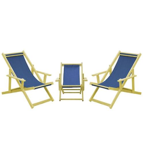 Kit 3 Espreguiçadeiras 2 Adulto E 1 Infantil-azul Marinho 3 ESPREGUIÇADEIRAS C/B (2 ADULTO e 1 INFANTIL)Sabe aquele final de tarde que você tanto espera para tirar um descanso merecido? Ou aquela viagem para a praia programada a meses com a família? Pois é, nossas cadeiras espreguiçadeira serve exatamente para esses momentos, com várias opções de cores, os tecidos além de charmosos são hidro-repelentes e se adequam a qualquer ambiente, facilmente removíveis para higienização.Estrutura 100% de madeira maciça de ótima qualidade, a espreguiçadeira é totalmente dobrável e reclinável (4 posições de ângulo), com descanso para braço, sendo possível montar invertida sem o encosto de braço, perfeita para seu lazer em todos os ambientes, esse é o item que definitivamente não pode faltar na vida de quem de fato, quer aproveitar bons momentos! Medidas Cadeira Espreguiçadeira Adulto:Dimensões aproximadas do produto:Comprimento: 135 cm;Largura: 68 cm;Peso: 8,5 Kg4 Níveis de regulagem de alturaSuporta aproximadamente 120 kg.Fabricada Madeira Maciça Pinus Medidas Cadeira Espreguiçadeira Infantil:Dimensões aproximadas do produto:Altura 1: 74,5 cm;Altura 2: 64 cm;Altura 3: 51 cm;Profundidade: 66 cm.Dimensão aproximada total:Comprimento: 64 cm;Largura: 56 cm;03 Níveis de Regulagem de Altura;Tecido Reforçado;Fabricada em Madeira Maciça Pinus;Peso aproximado: 5,5 Kg;Suporta aproximadamente 70 kg;Cor da Madeira: ;Informações Adicionais:Garantia: 90 dias contra defeitos de fabricação.Acompanha 2 cadeiras adultas e 1 infantil Obs. A cor pode variar da foto conforme a tonalidade da madeira e iluminação.. !!