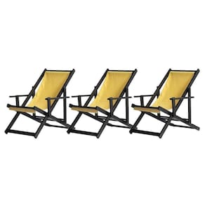 Kit 3 Espreguiçadeiras Dobrável Black Cb-amarelo 3 ESPREGUIÇADEIRAS ENVERNIZADAS BLACK C/BSabe aquele final de tarde que você tanto espera para tirar um descanso merecido? Ou aquela viagem para a praia programada a meses com a família? Pois é, nossas cadeiras espreguiçadeira serve exatamente para esses momentos, com várias opções de cores, os tecidos além de charmosos são hidro-repelentes e se adequam a qualquer ambiente, facilmente removíveis para higienização.Estrutura 100% de madeira maciça e verniz especial, que garante sua qualidade e durabilidade, a espreguiçadeira é totalmente dobrável e reclinável (4 posições de ângulo), com descanso para braço, sendo possível montar invertida sem o encosto de braço, perfeita para seu lazer em todos os ambientes, seja ele externo ou interno, esse é o item que definitivamente não pode faltar na vida de quem de fato, quer aproveitar bons momentos! FICHA TÉCNICA DO PRODUTO:04 Níveis de Regulagem de Altura;Tecido Reforçado;Fabricada em Madeira Maciça Pinus;Peso aproximado: 7,5 Kg;Suporta aproximadamente 120 kg;Cor da Madeira: Preta Dimensões aproximadas do Produto:Altura 1: 69 cm;Altura 2: 82 cm;Altura 3: 91 cm;Altura 4: 100 cm;Profundidade: 105 cm. Dimensão aproximada total:Comprimento: 135 cm;Largura: 66 cm; Informações Adicionais:Garantia: 90 dias contra defeitos de fabricação.Acompanha 3 cadeiras Obs. A cor pode variar da foto conforme a tonalidade da madeira e iluminação.. !! Marca: Brasil Móveis