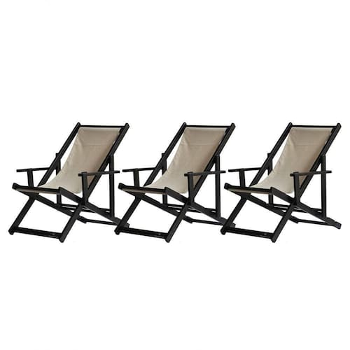 Kit 3 Espreguiçadeiras Dobrável Black Cb-bege