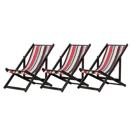 Kit 3 Espreguiçadeiras Dobrável Black Sb-l Marrom-vermelho