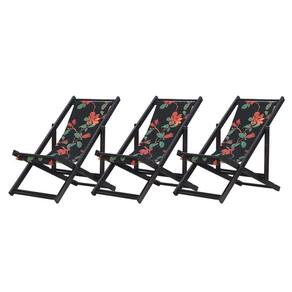 Kit 3 Espreguiçadeiras Dobrável Black Sb-preto Flores