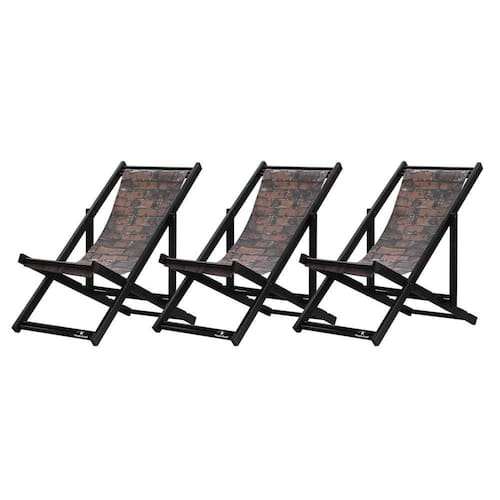 Kit 3 Espreguiçadeiras Dobrável Black Sb-tijolo 3 ESPREGUIÇADEIRAS ENVERNIZADAS BLACK S/BSabe aquele final de tarde que você tanto espera para tirar um descanso merecido? Ou aquela viagem para a praia programada a meses com a família? Pois é, nossas cadeiras espreguiçadeira serve exatamente para esses momentos, com várias opções de cores, os tecidos além de charmosos são hidro-repelentes e se adequam a qualquer ambiente, facilmente removíveis para higienização.Estrutura 100% de madeira maciça e verniz especial, que garante sua qualidade e durabilidade, a espreguiçadeira é totalmente dobrável e reclinável (4 posições de ângulo), perfeita para seu lazer em todos os ambientes, seja ele externo ou interno, esse é o item que definitivamente não pode faltar na vida de quem de fato, quer aproveitar bons momentos! FICHA TÉCNICA DO PRODUTO:04 Níveis de Regulagem de Altura;Tecido Reforçado;Fabricada em Madeira Maciça Pinus;Peso aproximado: 7,5 Kg;Suporta aproximadamente 120 kg;Cor da Madeira: PretaAcabamento: Envernizada Dimensões aproximadas do Produto:Altura 1: 69 cm;Altura 2: 82 cm;Altura 3: 91 cm;Altura 4: 100 cm;Profundidade: 105 cm. Dimensão aproximada total:Comprimento: 135 cm;Largura: 60 cm; Informações Adicionais:Garantia: 90 dias contra defeitos de fabricação.Acompanha 3 cadeiras Obs. A cor pode variar da foto conforme a tonalidade da madeira e iluminação..