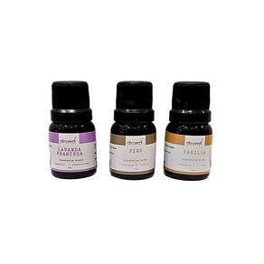Kit 3 essências aromáticas puras 10ml cada aromá: 1 essência aromática pura lavanda francesa aromá 10ml tranquilidade 1 essência aromática pura figo aromá 10ml alegria 1 essência aromática pura vanilla aromá 10ml luxo 1 saquinho 100% algodão Essência aromática pura lavanda francesa aromá 10ml tranquilidade Essência pura aromática para uso em difusores elétricos ou cerâmicos. A fragrância lavanda francesa exclusiva da aromá transmite tranquilidade ao ambiente. Indicada principalmente para sala de estar e quartos, também pode ser Utilizado em ambiente de trabalho. Descrição olfativa lavanda francesa: Lavanda é originária da europa, age sobre o mesencéfalo estimulando-o através do nervo olfativo o que confere ação . Traz sensação de relaxamento e tranquilidade. Topo: lavanda e notas cítricas Corpo: rosa, alecrim, muguet e a suavidade do lavandin Fundo: âmbar e madeiras Embalagem plástica âmbar com gotejador 10ml Essência aromática pura figo aromá 10ml alegria Essência pura aromática para uso em difusores elétricos ou cerâmicos. A fragrância figo exclusiva da aromá transmite alegria. Indicada principalmente para sala de estar e quartos, também pode ser Utilizado em ambiente de trabalho. Descrição olfativa figo: Figo é uma fruta delicada, doce e muito aromática. Sua fragrância é contagiante e transfere alegria ao ambiente Topo: notas lactônicas, madresilva, coco e a delicada peônia. Corpo: notas quentes de chocolate, baunilha, figo e o aconchego do powdery Fundo: elegância do âmbar, vetiver e cedro Embalagem plástica âmbar com gotejador 10ml Essência aromática pura vanilla aromá 10ml luxo Essência pura aromática para uso em difusores elétricos ou cerâmicos. A fragrância vanilla exclusiva da aromá transmite luxo indicada principalmente para sala de estar e quartos, também pode ser Utilizado em ambiente de trabalho. Descrição olfativa vanilla: Notas de topo: limão, alecrim e bergamota Notas de corpo: baunilha e cedro Notas de fundo: patchouli e musk Embalagem plástica âmbar com gotejador 10ml Modo de uso: Uso em difusores / umidificadores elétricos: cerca de 10 gotas após preencher com água o difusor. Uso em difusores elétricos cerâmicos: complete até cerca da metade do difusor com a essência, ligue na tomada e ligue o botão. Marca: Não Informado