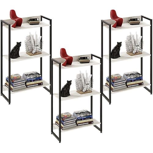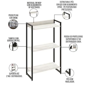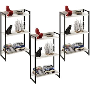 Com o Kit 3 Estantes Multiuso Escritório Industrial 3 Prateleiras Areta 104x60cm C01 Snow - Lyam Decor, o conceito industrial ficará evidente no seu ambiente, tornando o mesmo muito mais moderno, sofisticado e organizado, garantindo isso com 03 prateleiras que deixam tudo prático e funcional. Uma característica muito forte dos móveis industriais é a união do tubular de estrutura exposta com a madeira, que dão todo o charme para agregar no estilo que está entre os mais buscados no ramo de arquitetura e decoração.