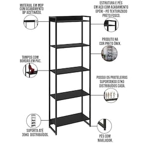 Com o Kit 3 Estantes Multiuso Escritório Industrial 5 Prateleiras Areta 186x60cm C01 Onix - Lyam Decor, o conceito industrial ficará evidente no seu ambiente, tornando o mesmo muito mais moderno, sofisticado e organizado, garantindo isso com 05 prateleiras que deixam tudo prático e funcional. Uma característica muito forte dos móveis industriais é a união do tubular de estrutura exposta com a madeira, que dão todo o charme para agregar no estilo que está entre os mais buscados no ramo de arquitetura e decoração.