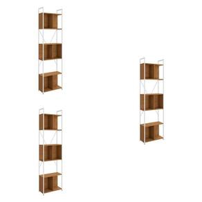Kit 3 Estantes para Livros 7 Prateleiras 200cmx216cm Office Industrial Canela/Branco Brilho - Marrom