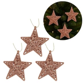 Kit Estrela Natalina Arabesco Tridimensional Vazado com Glitter Rosê gold – Jogo com 3 Unidades