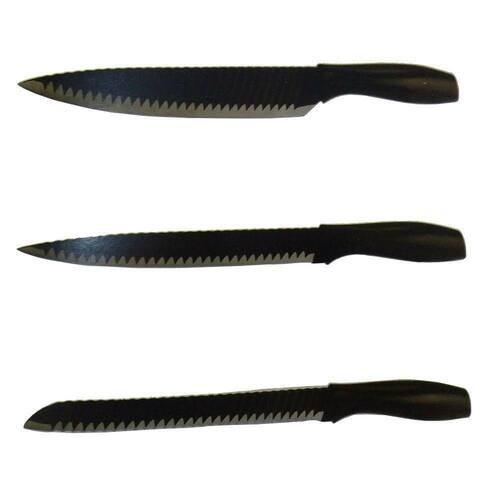 Kit 3 facas inox antiaderente austrália carne cozinha e pão Lâmina ondulada e antiaderente de 20,5cm que trará praticidade e beleza rm sua cozinha